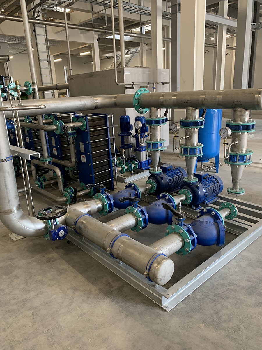 - All pipework is installed with high quality fittings and valves such as level ball valves, butterfly valves, double regulating valves etc.